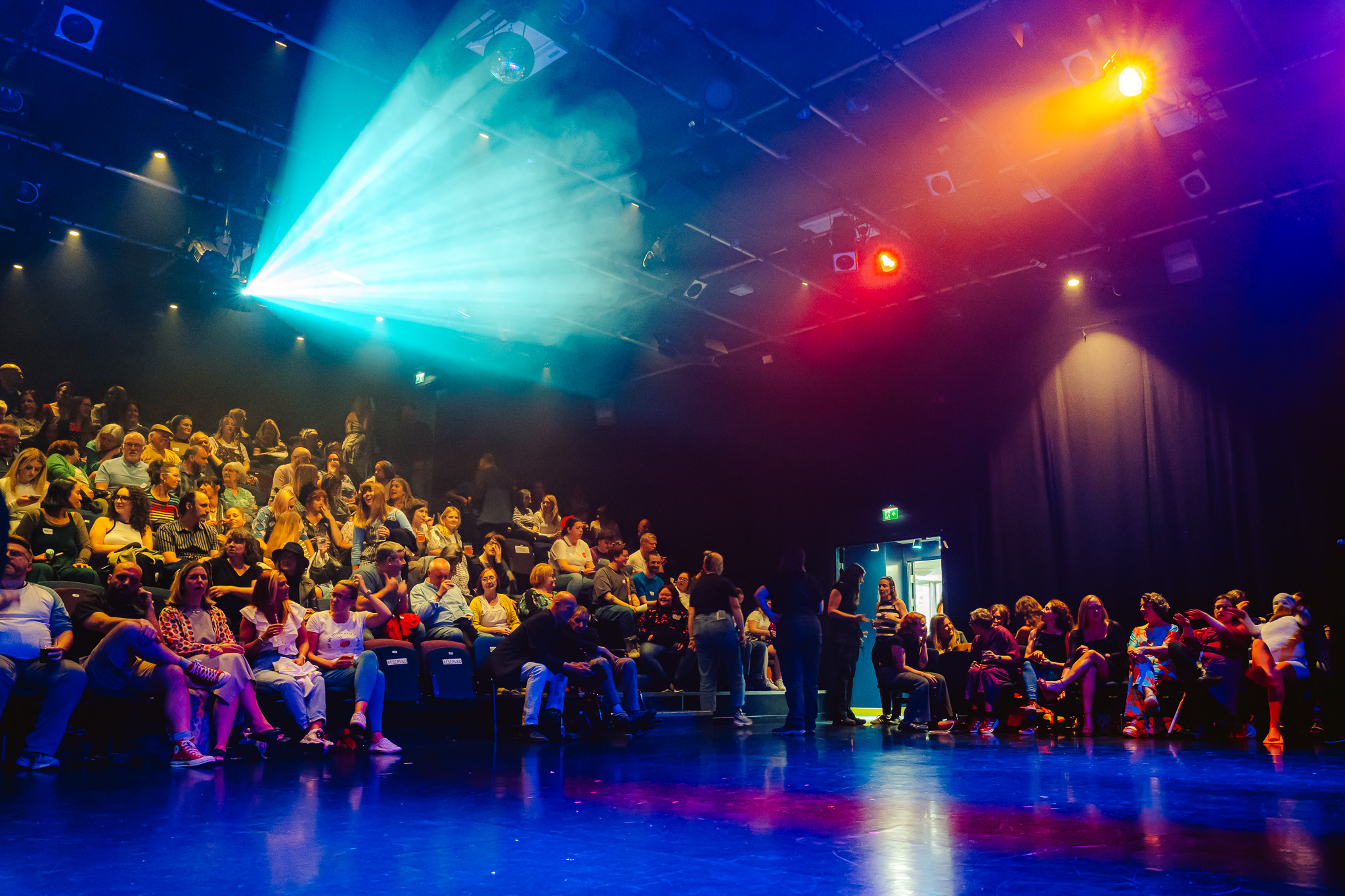 Located on our second floor, Unity Two is accessible via our lift and has a flexible number of wheelchair spaces depending on seating layout. A hearing loop system is available for those with a hearing impairment. This space has access to two dressing rooms and a small kitchenette with microwave